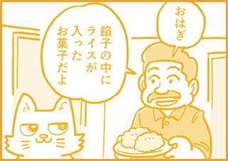俵形に丸めると、作中にも登場する天照大神ち ゃんの肉球印入りおはぎができあがるタオルハンカチ♡